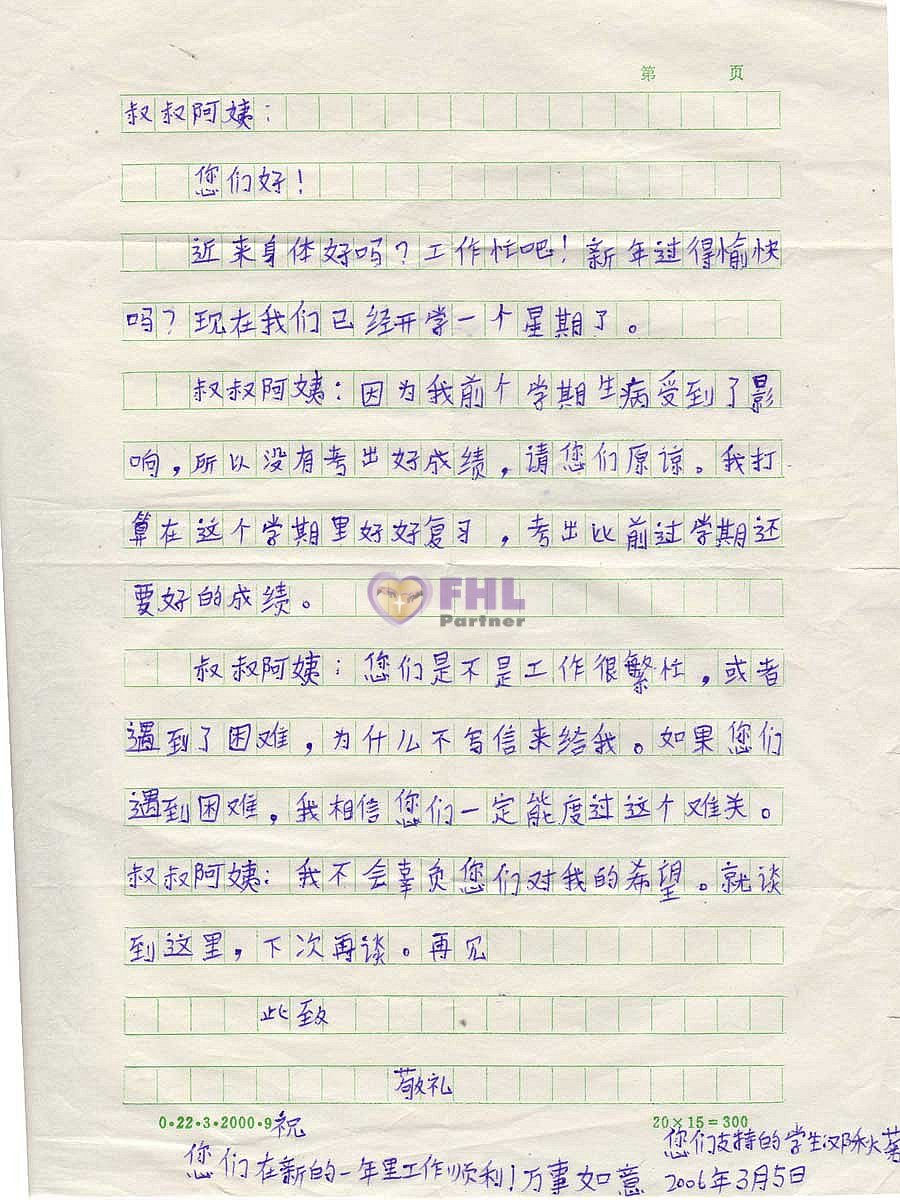 In 2006, FHL helped 40 students from Ping Bian Yunan province. Letters from the students touched everyone's heart.