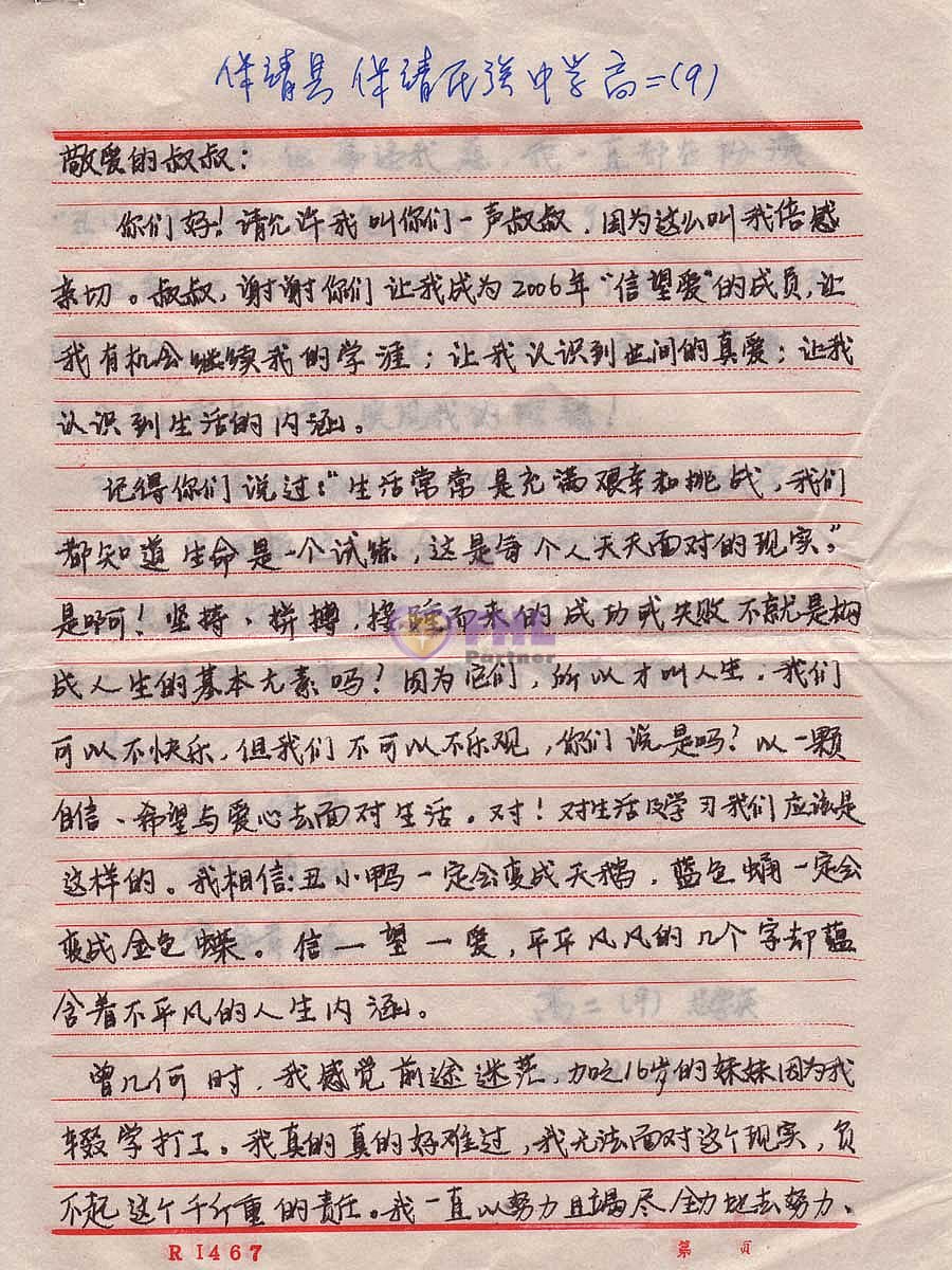 2006年, 信望爱帮助了30余名来自 湖南湘西 的学生, 孩子们一一发来感谢信。