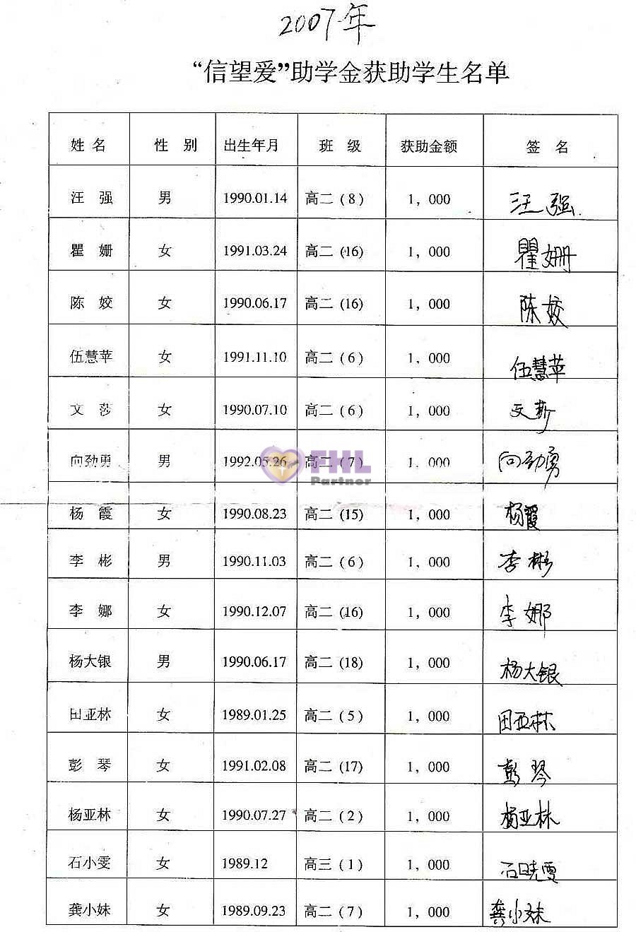 2007年, 信望爱帮助了30余名来自 湖南保靖 的学生, 孩子们一一发来感谢信。